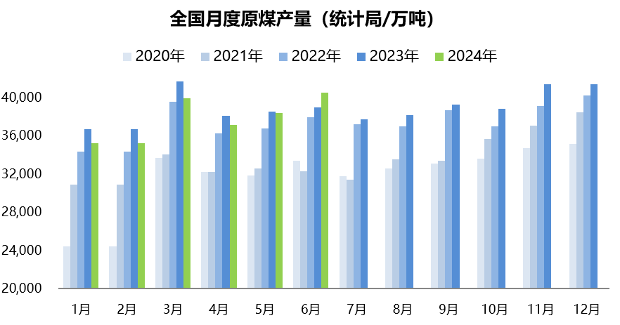 1.1、据国家统计局数据,2024年6月全国原煤产量40538万吨,环比增长5.61%,同比增长3.6%,增速由负转正,上月为减少0.8%;2024年1-6月累计原煤产量226551万吨,同比减少1.7%或3503万吨。