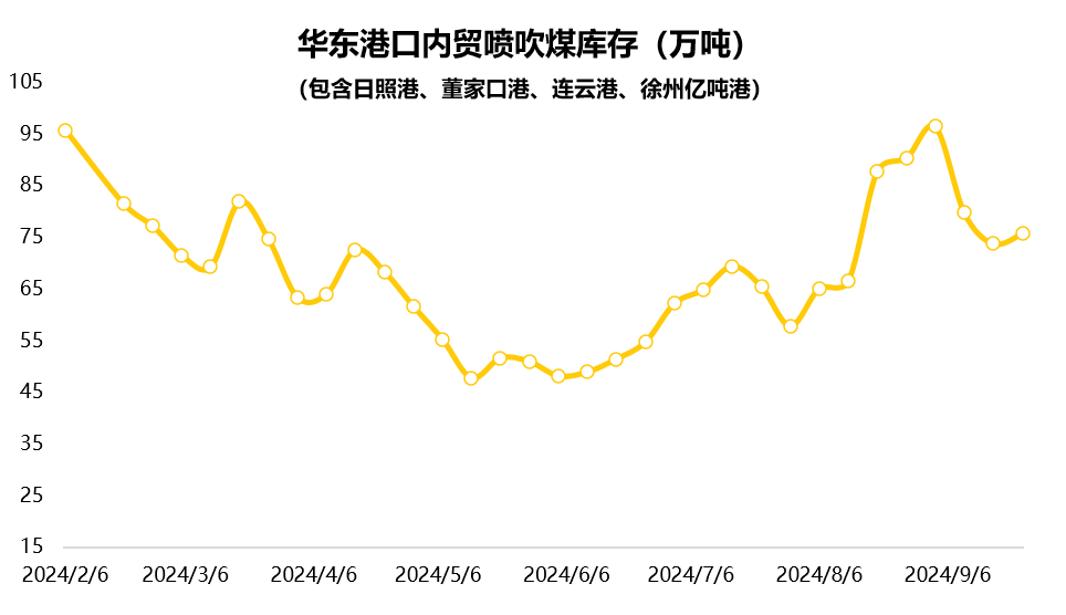 二、港口喷吹库存:截至9月26日,华东地区内贸喷吹煤港口库存总计75.7万吨,环比上周增长2万吨。