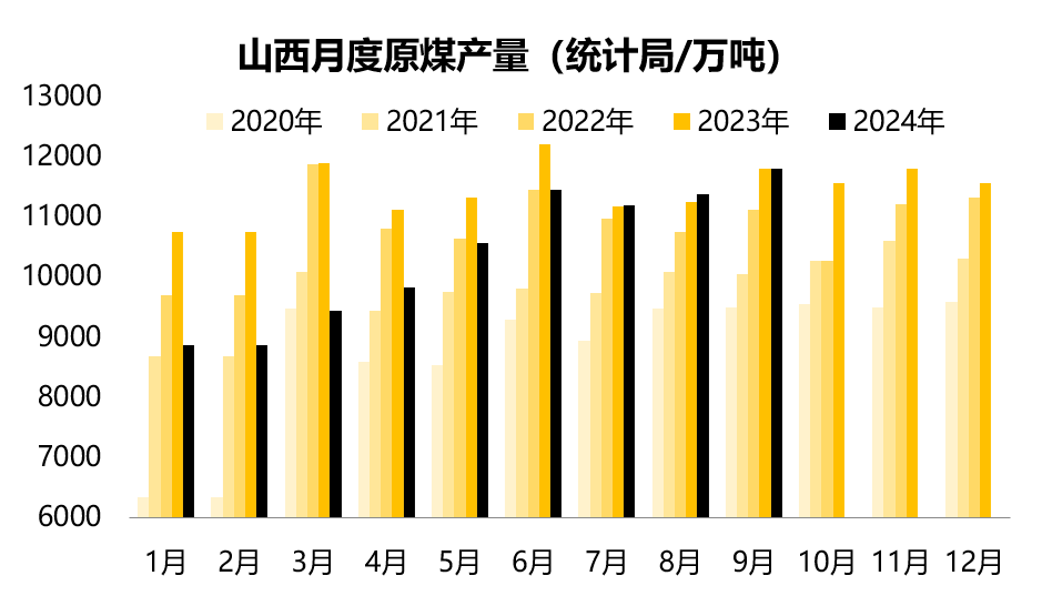 1.2、2024年9月山西原煤产量11806.6万吨,环比增长3.76%,同比减少0.2%,增速由正转负;2024年1-9月山西累计原煤产量为93365.9万吨,同比减少8.2%或8074万吨。山西煤矿产量维持高位,与去年同期相当,累计同比降幅逐步收窄。