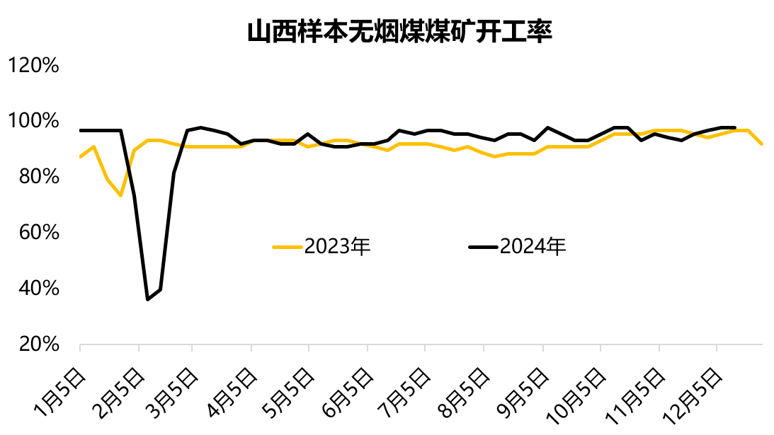 一、煤矿开工率:截至12月12日,山西样本无烟煤矿开工率为97.67%,环比持平。
