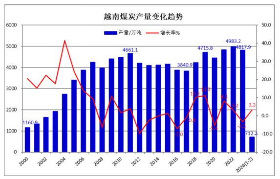 2024年1-2月俄罗斯煤炭产量同比增长0.5%,海运煤炭出口同比下降15.6%